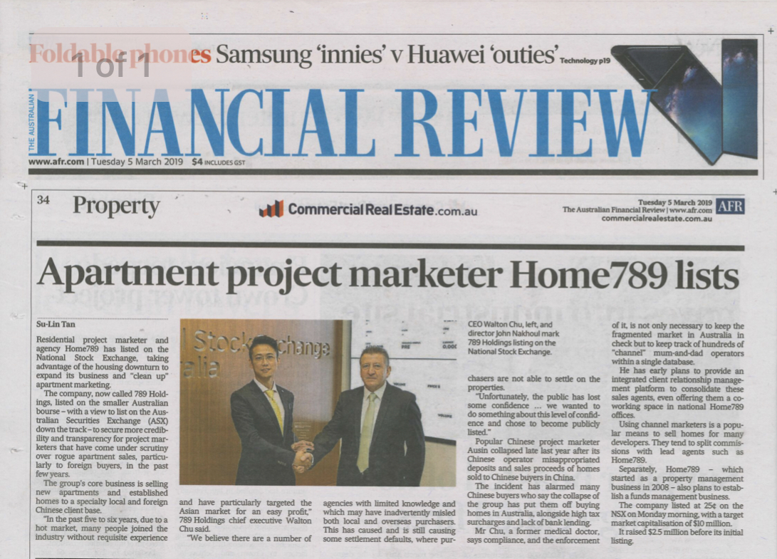 789 Holdings Limited was successfully listed on the National Stock Exchange on March 4th 2019, at 11am. 789 Holdings Limited is the first real estate project marketing and property management company to be publicly listed in Australia. Today marks an honourable milestone that reflects the company’s past accomplishments and a path that will be paved for a successful future.